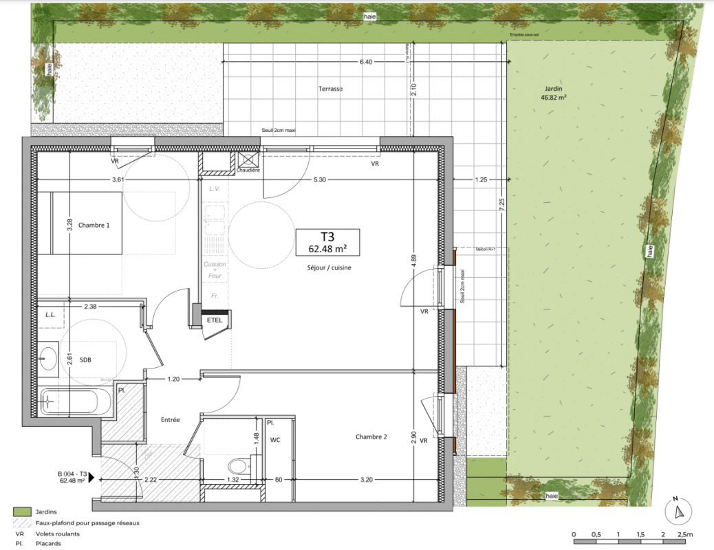463 900€ Appt. T3 61.3m2 0-RDC