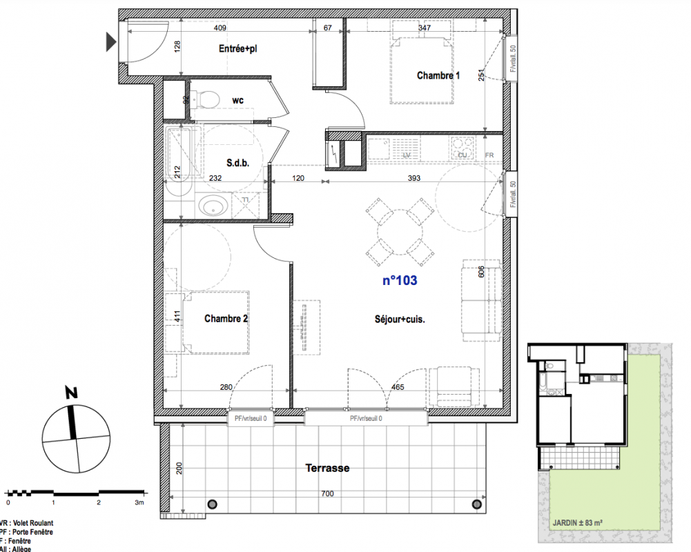 272 999€ Appt. T3 61m2 0-RDC