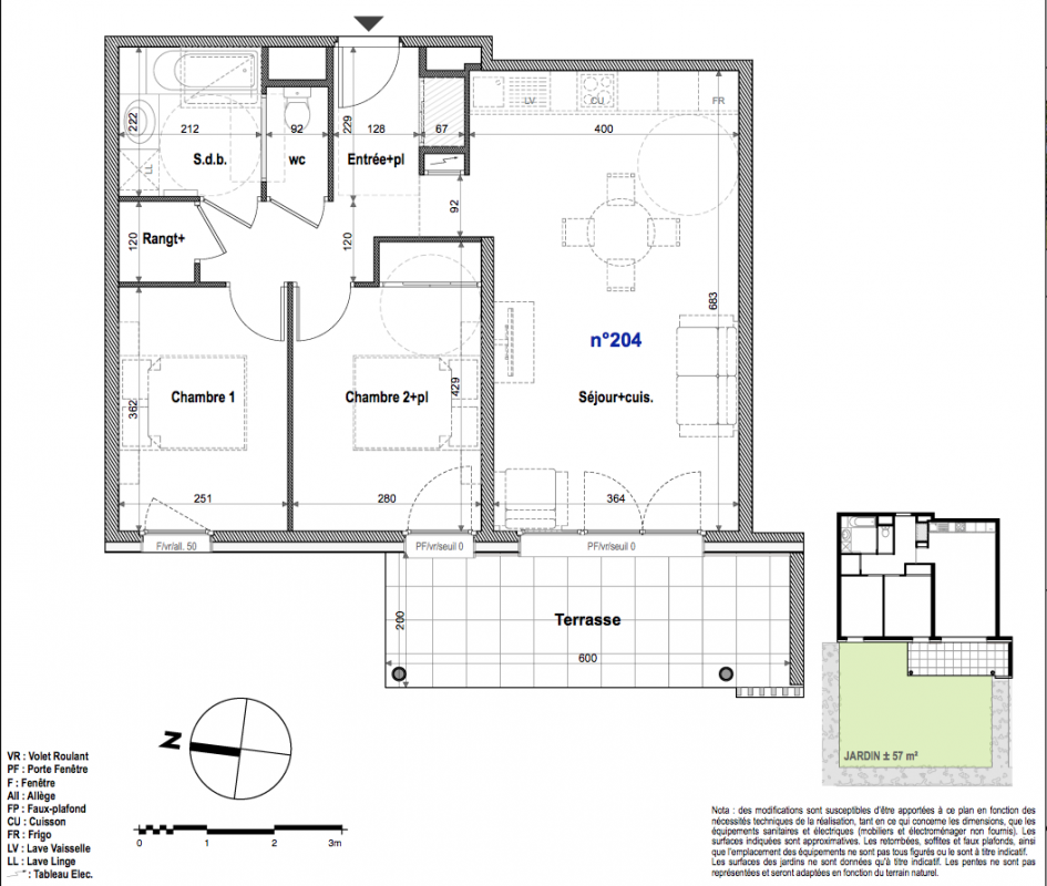 284 999€ Appt. T3 63m2 0-RDC