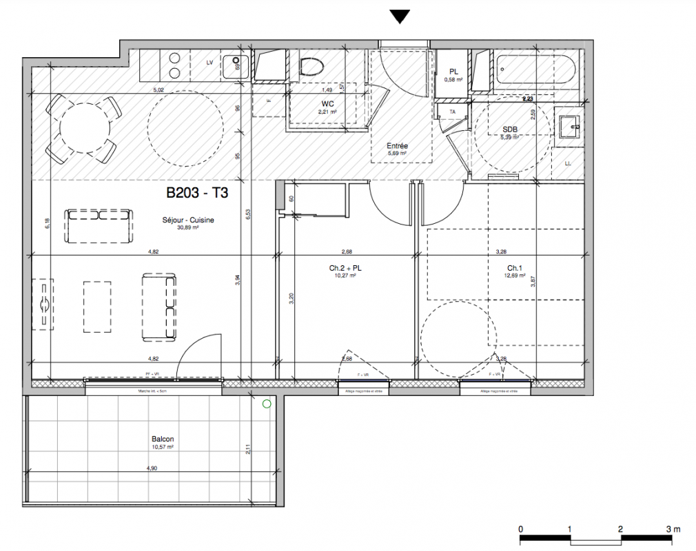 302 000€ Appt. T3 68.55m2 0-RDC