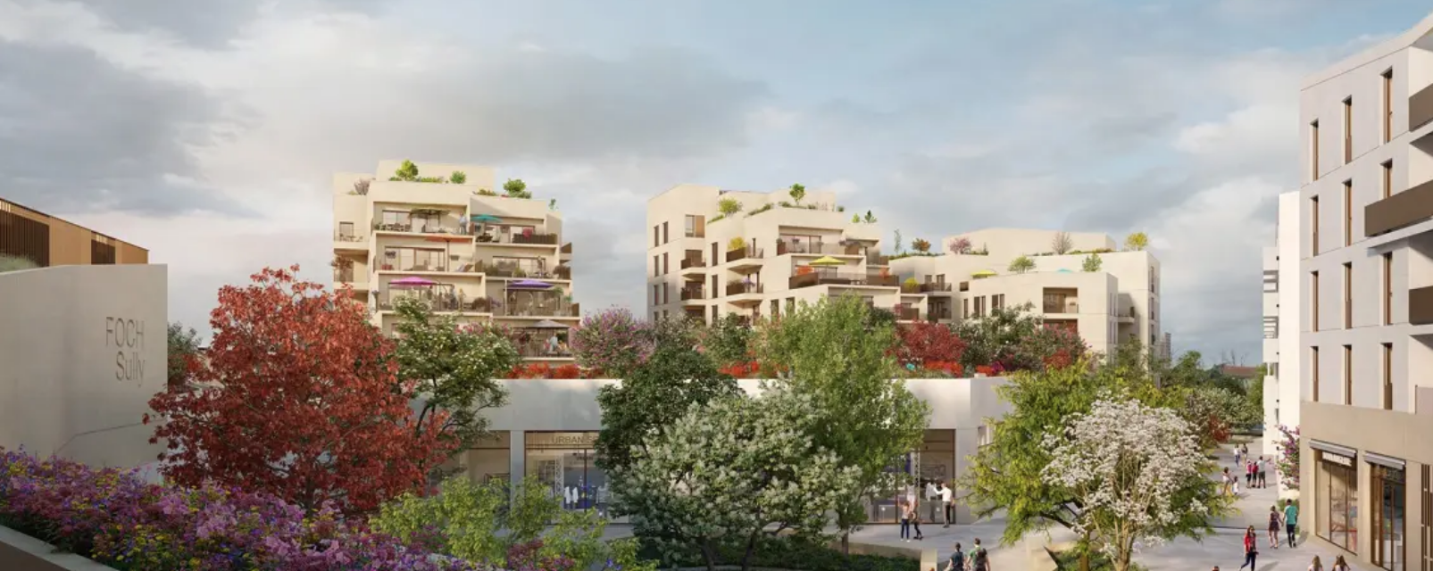 Nouvelle résidence immobilière EMBELLIE constituée de 11 lofts et de 80 appartements. La nouvelle résidence EMBELLIE arbore un style résolument contemporain. Avec d'un côté des appartements très spacieux et de l'autre des lofts en duplex, cette réalisation singulière s'inscrit naturellement dans la lignée du projet Foch-Sully : une ville apaisée ou la lumière inonde chaque mètre carré. Toitures végétalisées, beaux extérieurs surplombant les nouveaux aménagements arborés, EMBELLIE offre un festival de couleurs au fil des saisons et cultive un art-de-vivre des plus séduisants.