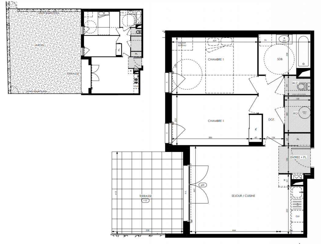 372 000€ Appt. T3 64.4m2 0-RDC