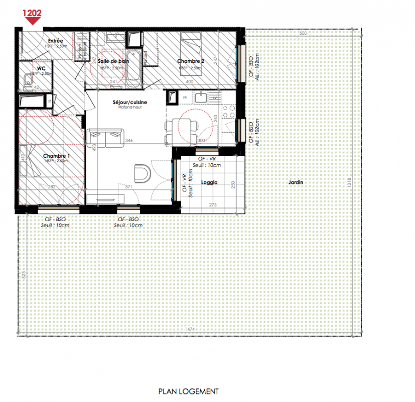 303 696€ Appt. T3 65m2 2ème