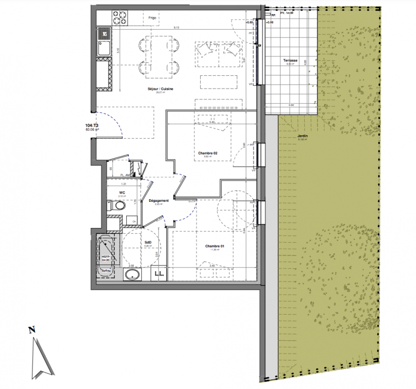 | Voir | Disponible | 259 999€ | 103 | Appt. | T3 | 60m2 | 0-RDC | Disponible | 259 999€ | Voir |