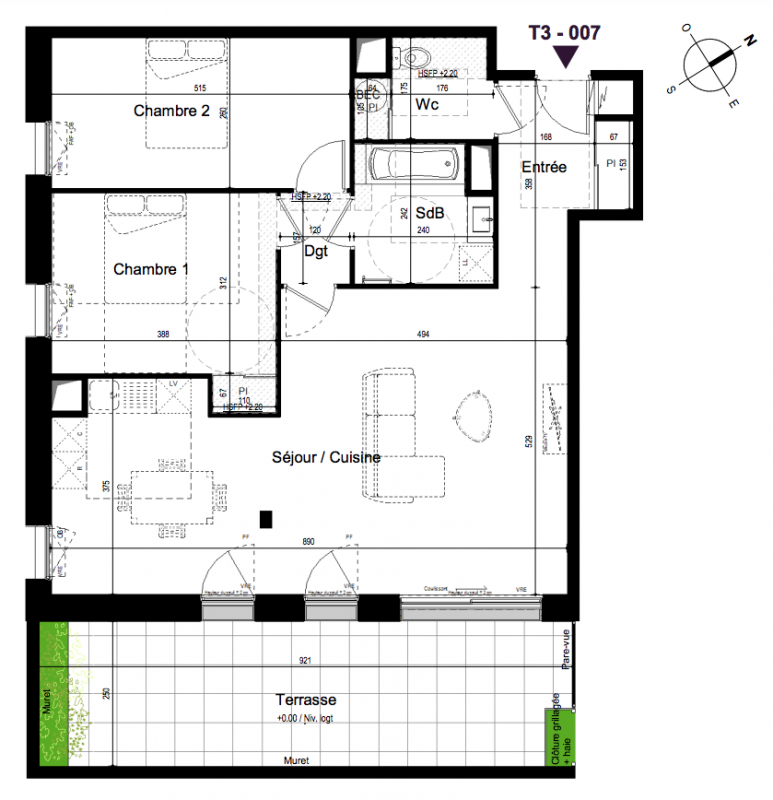 351 500€ Appt. T3 80.5m2 0-RDC