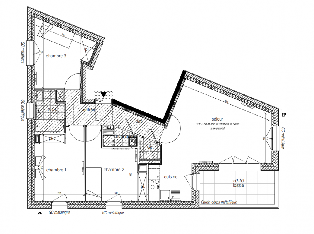 344 000€ Appt. T4 73.3m2 2ème