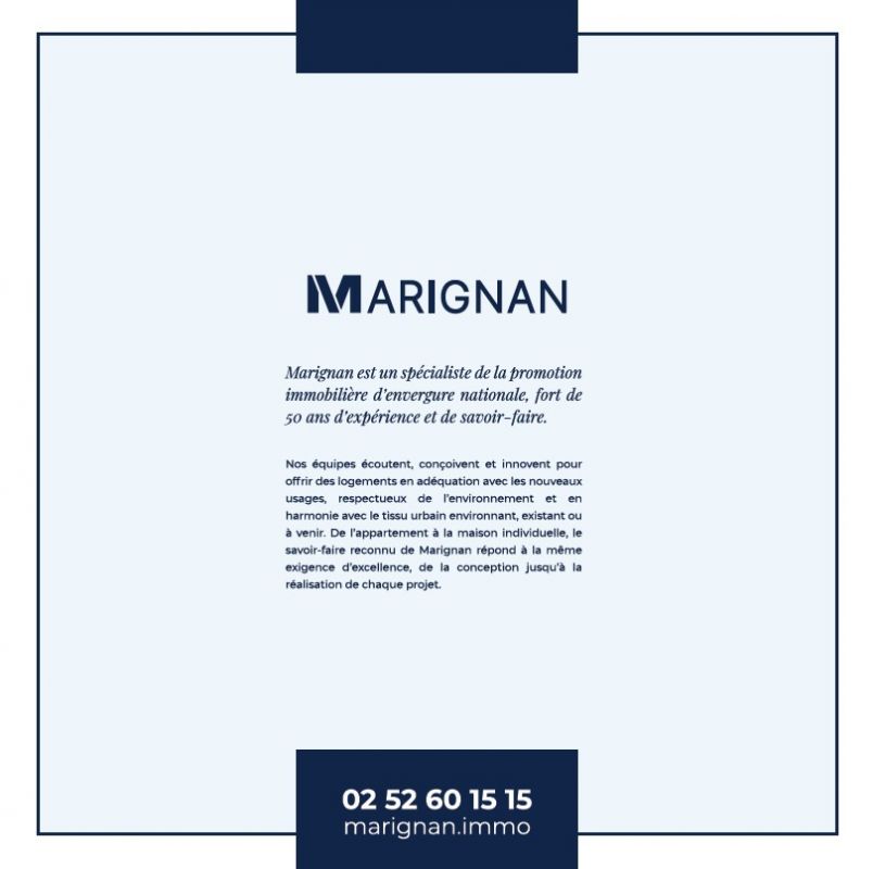 Découvrez une adresse rare à Larmor-Plage, entre sérénité, nature et océan. Notre nouvelle résidence propose des appartements du 2 au 4 pièces ainsi que des maisons de 4 à 5 pièces, aux volumes généreux et bien agencés. Chaque logement dispose d’un extérieur privatif : balcon, terrasse ou jardin. Stationnement inclus pour tous les résidents, ainsi qu’un local vélo pour plus de praticité. Située dans un quartier résidentiel calme, la résidence est à 1,1 km des commerces et 1,3 km des plages. L’emplacement offre un parfait équilibre entre le dynamisme urbain et la sérénité des espaces naturels, avec un arrêt de bus au pied de la résidence. Le port de plaisance et des commerces de proximité ajoutent à la commodité de ce cadre de vie. Larmor-Plage, station balnéaire prisée de Lorient, séduit par son cadre exceptionnel entre mer et nature, avec ses plages, ses équipements nautiques et ses vues imprenables sur l'île de Groix. À seulement 5 minutes de Lorient, cette ville allie accessibilité, dynamisme et qualité de vie tout au long de l’année. Contactez-nous dès maintenant pour découvrir en avant-première tous nos maisons et appartements neufs à Larmor-Plage et bénéficier des meilleures conditions pour votre achat !