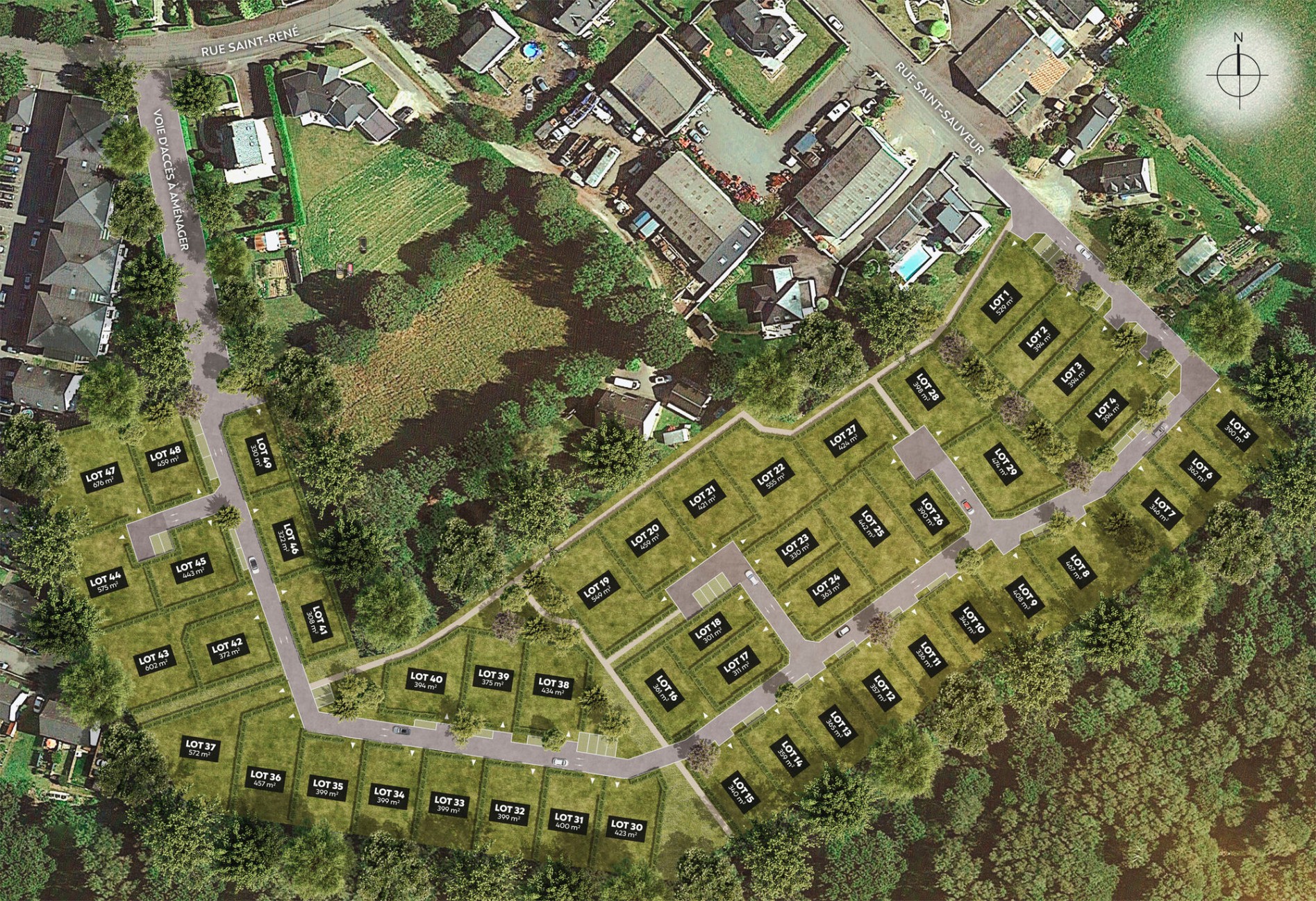 TERRAINS VIABILISÉS À LOCMINÉ, LOCMINÉ, Petite ville grandeur nature À 25 km au nord de Vannes à vol d’oiseau et 35 min* de Lorient, Locminé possède le charme unique des petites communes de Bretagne. Brocantes, festivals, concerts, théâtres… De nombreuses manifestations locales sont organisées ici tout au long de l’année. Et pour les amoureux de nature, rien de tel qu’une petite balade à l’étang du bois d’amour ou à la butte de Quistinic. Dynamique, authentique et conviviale, Locminé coche toutes les cases d’un lieu de vie de qualité, parfaitement équilibré. 49 TERRAINS LIBRES DE CONSTRUCTEUR POUR BÂTIR LA MAISON DE VOS RÊVES. Un emplacement privilégié dans un secteur boisé Situé entre la rue Saint-Sauveur et la rue Saint-René, Le Vallon de Saint-René vous accueille dans un environnement privilégié, en bordure d’un écrin boisé. Vous êtes à moins d’1 km du centre-bourg, à 3 minutes à pied d’un supermarché et à seulement 700 mètres de l’école primaire Annick Pizigot. C’est dans ce cadre à la fois préservé et proche de tout que vous attendent 49 terrains viabilisés de 300 m2 à 676 m2 , entourés d’espaces verts et de jolis chemins piétonniers. Place au bonheur !