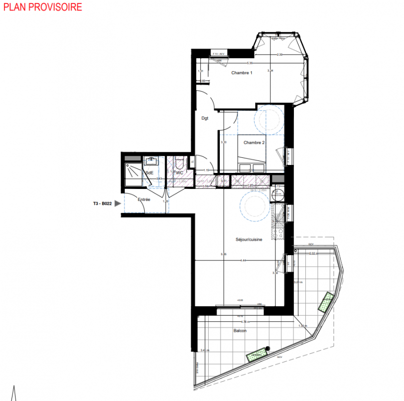 202 083€ Appt. T3 64.22m2 9ème