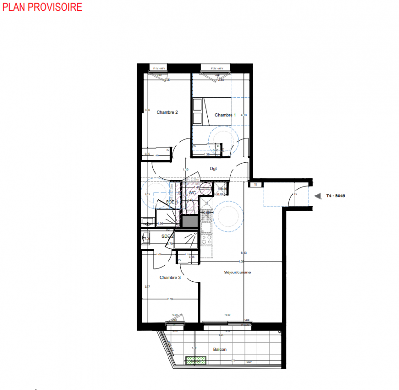 227 083€ Appt. T4 75.06m2 7ème