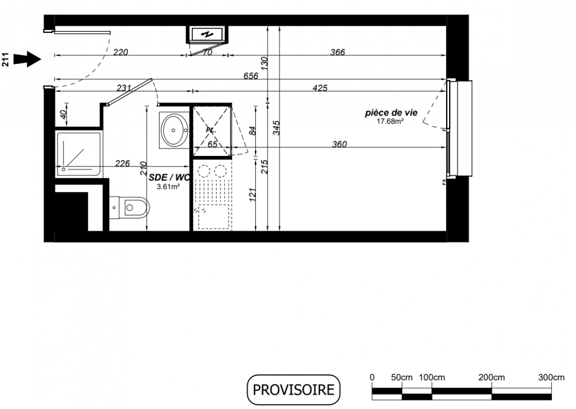 124 300€ Appt. Studio 17.49m2 3ème