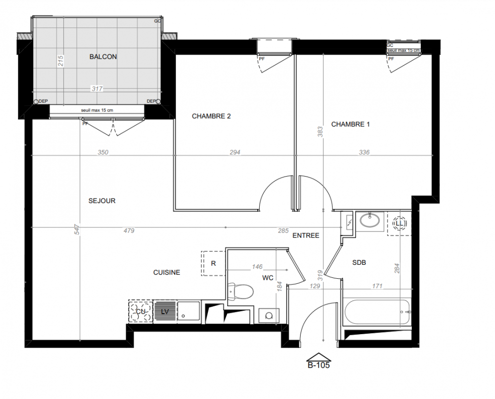 287 100€ Appt. T3 65.25m2 2ème