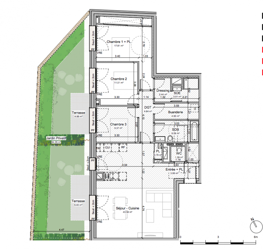 Une architecture élégante avec des matériaux noblesDes appartements neufs du 2 au 4 piècesDes appartements plus économes et respectueux de l’environnementUn espace extérieur confortable pour tousLe programme sera certifié RE 2020 et NF Habitat Des appartements spacieux et lumineuxDes appartements neufs spacieux et lumineuxLoggia ou terrasse confortable pour chaque appartementDes prestations de qualité : carrelage Porcelanosa, parquet contrecollé, robinetterie Grohe, WC suspendu…Une place de stationnement sous-sol pour chaque appartement.