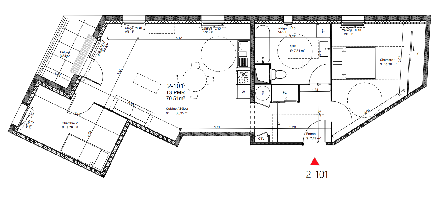 | Voir | Disponible | 169 800€ | 2103 | Appt. | T3 | 69.7m2 | 1er | Disponible | 169 800€ | Voir |
