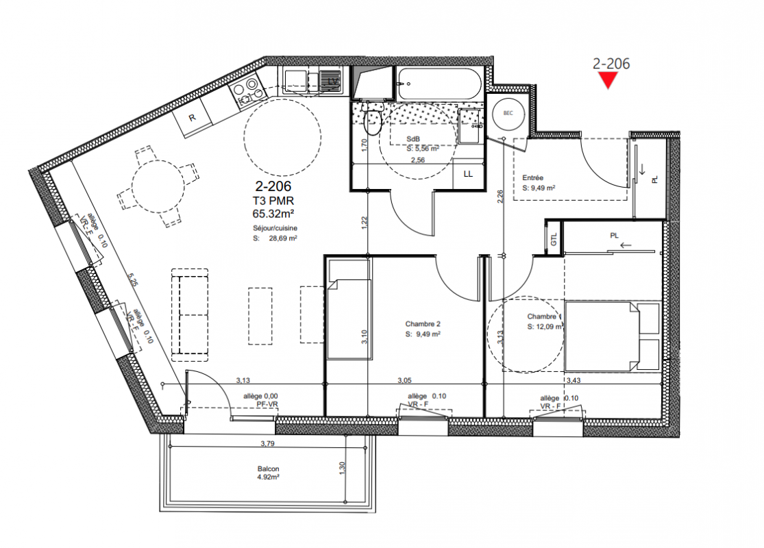 169 400€ Appt. T3 65.03m2 2ème