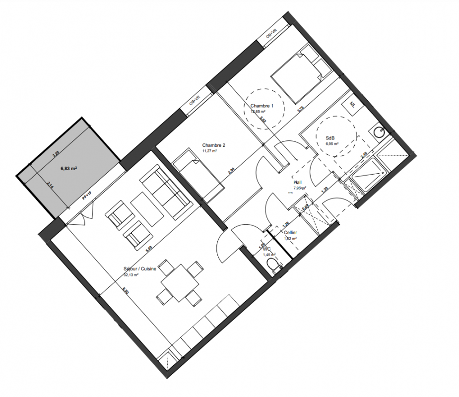 374 400€ Appt. T3 61.06m2 0-RDC