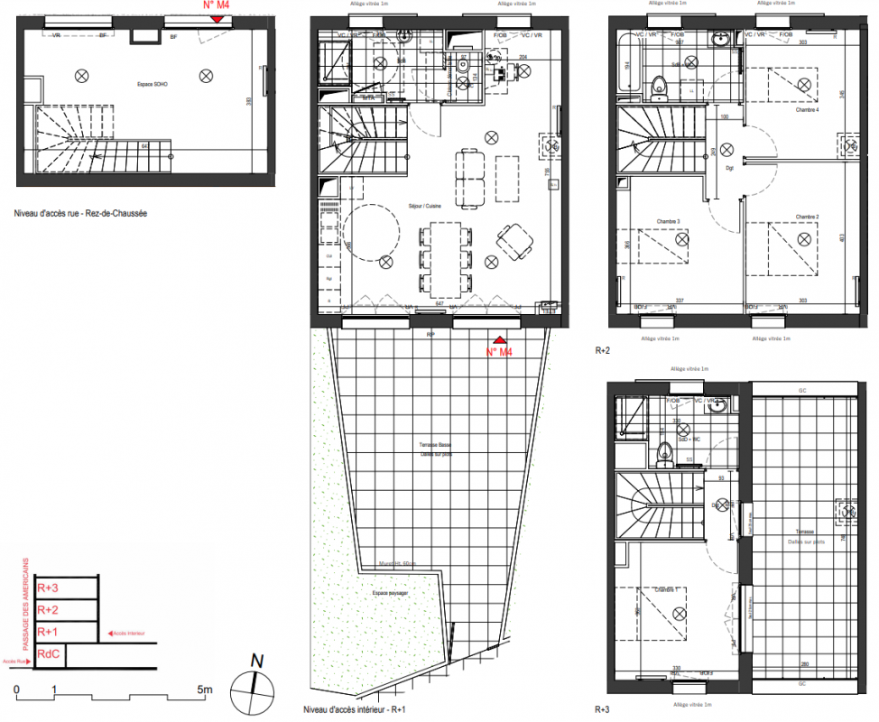 Votre appartement pensé comme une maison de ville : 3 ou 4 chambres (suite parentale pour les T5), bel espace de vie avec cuisine ouverte sur une grande terrasse extérieure entièrement végétalisée, 1 ou 2 salles de bains équipées avec prestations haut de gamme (parquet contrecollé, carrelage et faïence de qualité, menuiseries aluminium, fibre optique…).