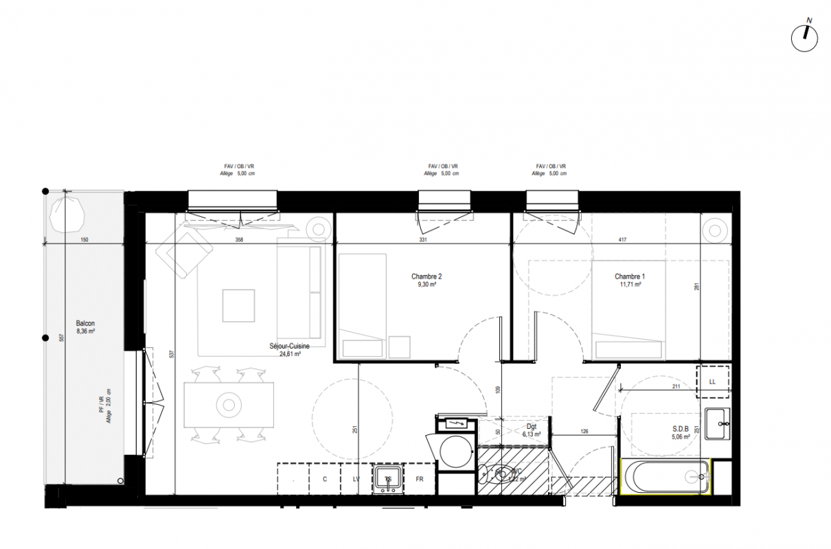 210 313€ Appt. T3 58.03m2 3ème