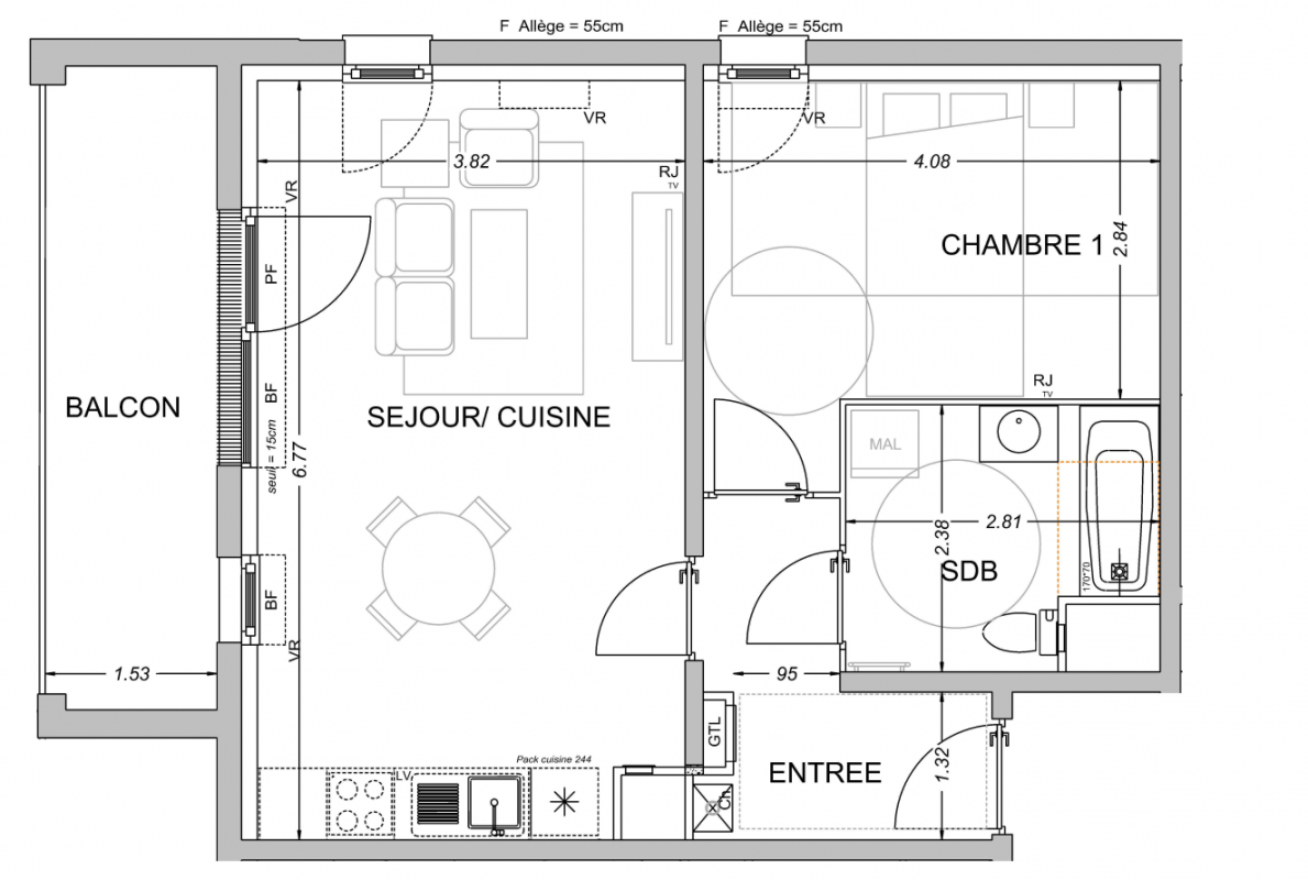 173 000€ Appt. T2 43.6m2 1er