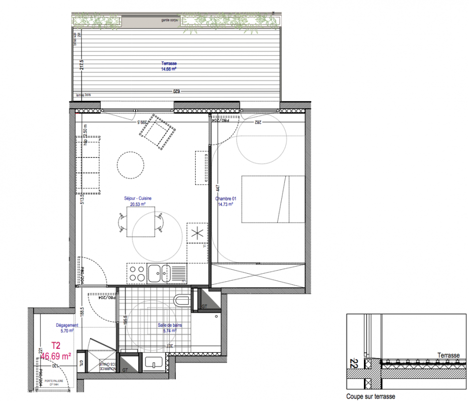 299 000€ Appt. T2 51.25m2