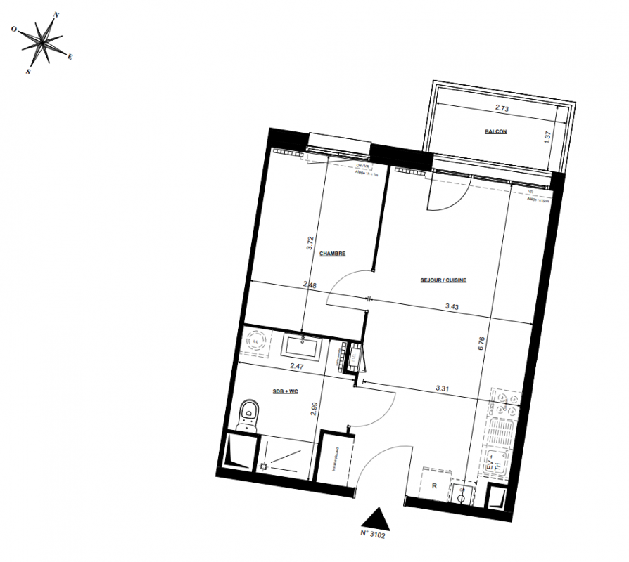 176 303€ Appt. T2 38.3m2 3ème