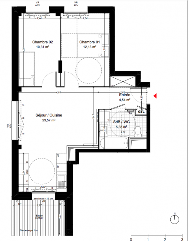 356 000€ Appt. T3 63.34m2 2ème