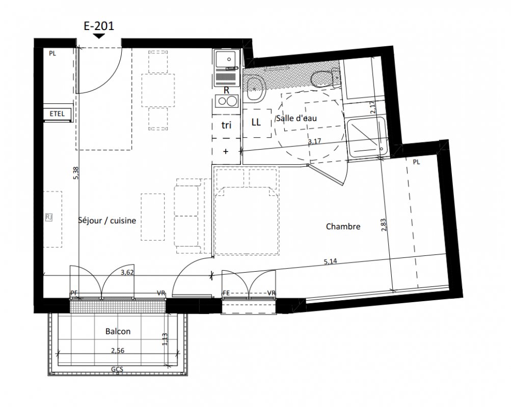 222 000€ Appt. - 42.78m2 0-RDC