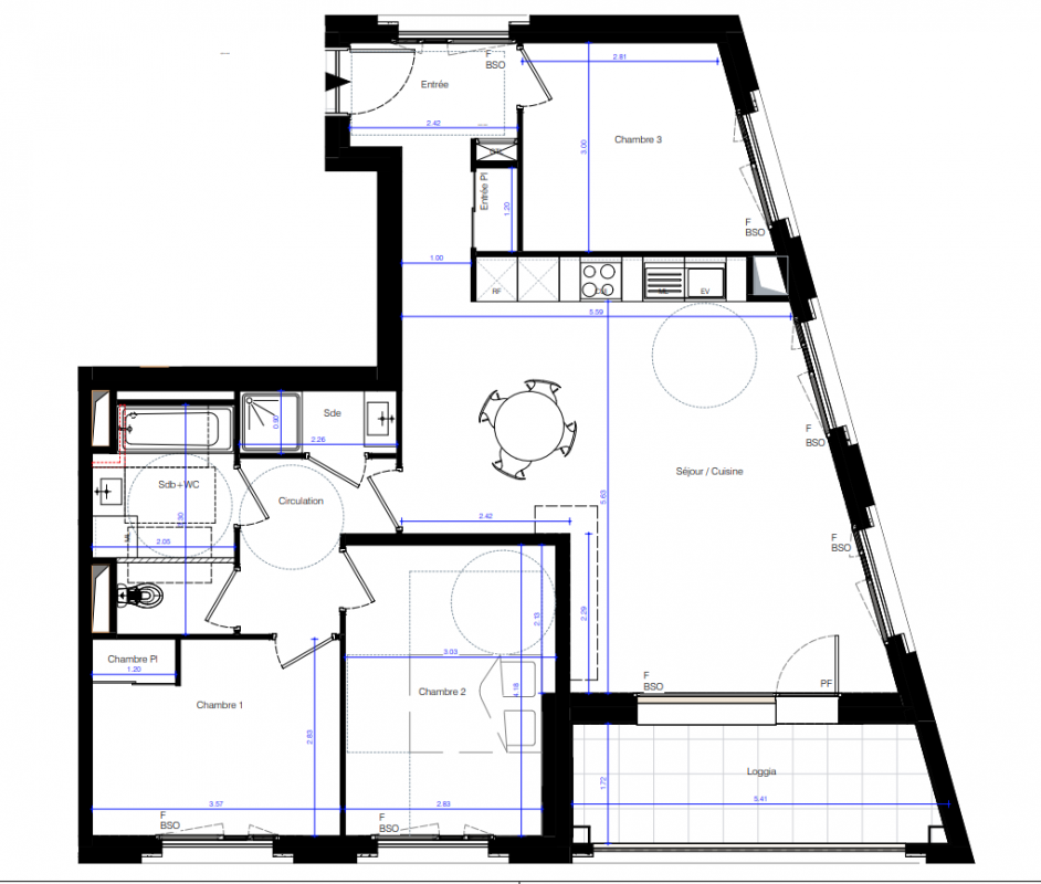 *Pour les logements du bâtiment T1 : brise-soleil à lames orientables.