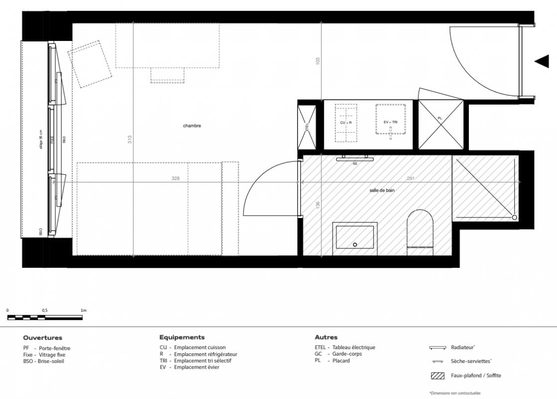 143 101€ Appt. Studio 17.8m2 3ème