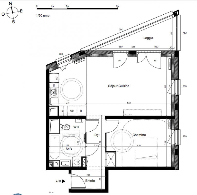 303 000€ Appt. T2 52.33m2 5ème