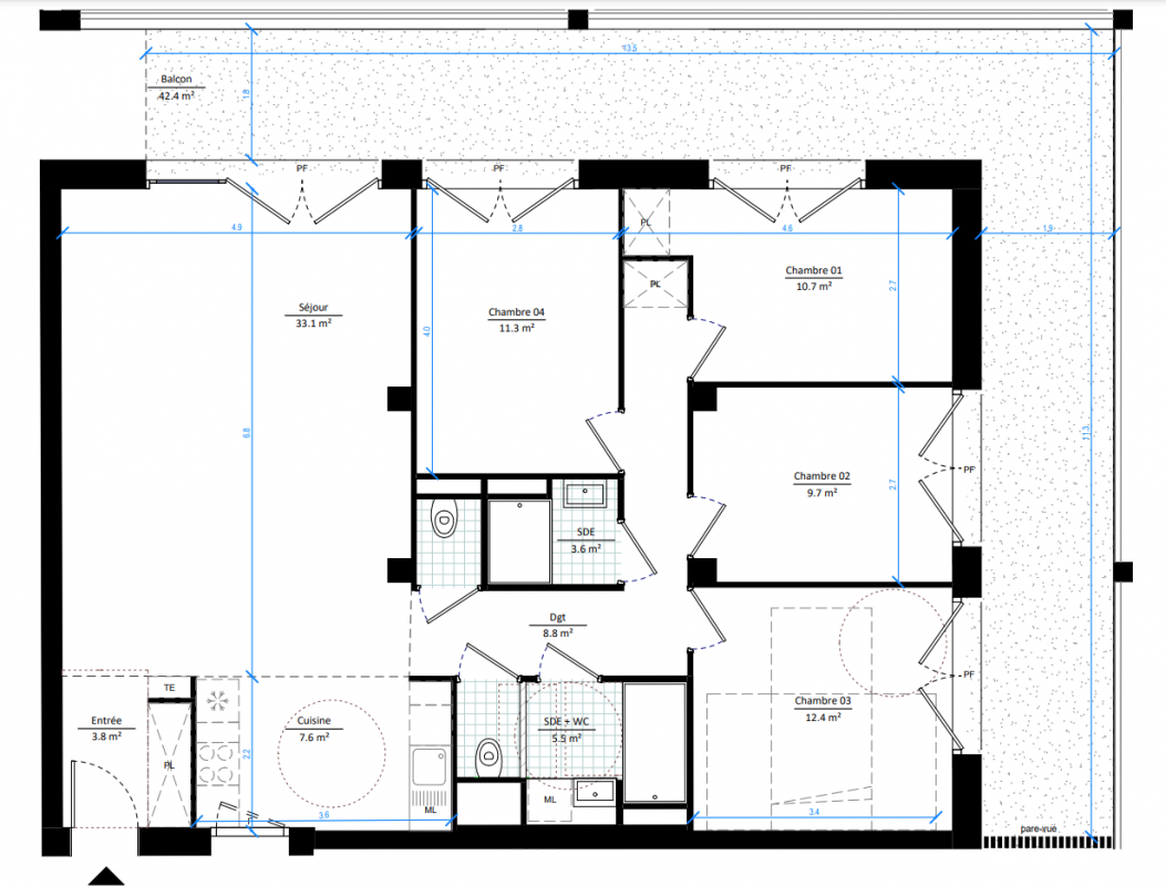 553 500€ Appt. T5 99.9m2 3ème