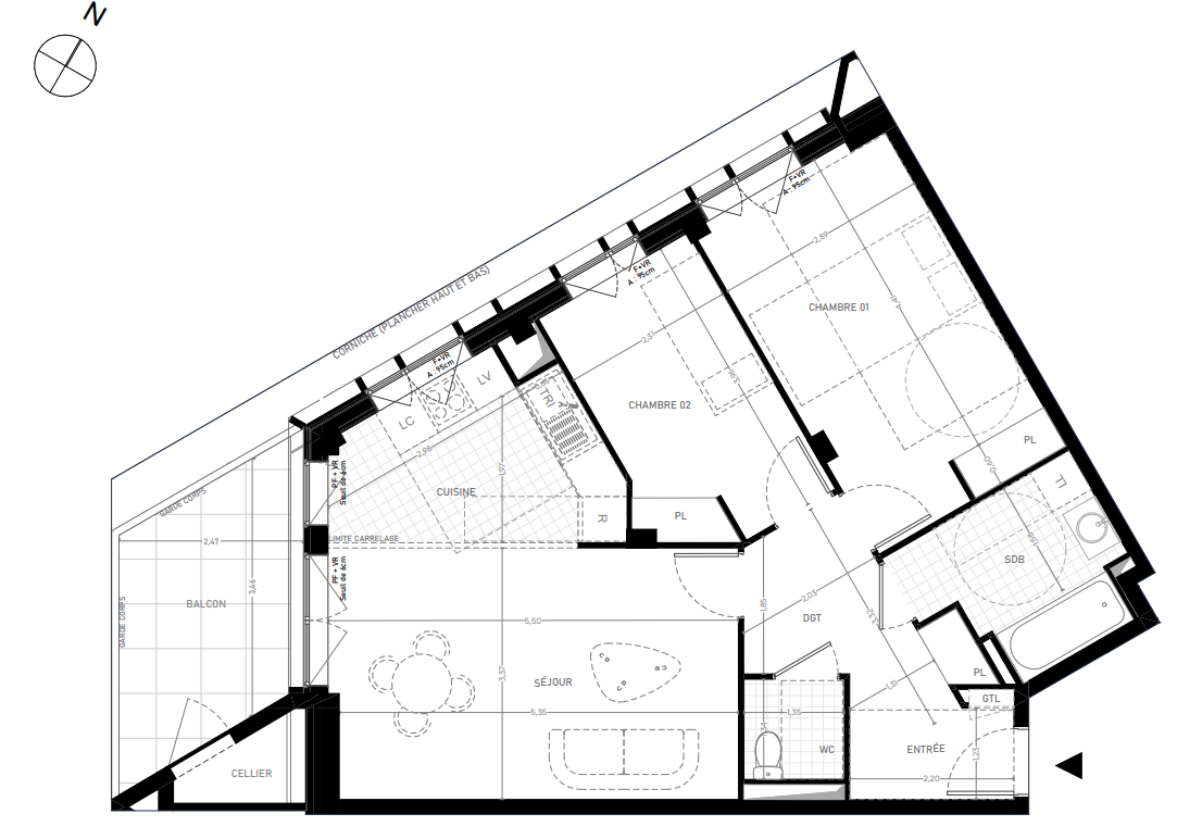 398 000€ Appt. T3 65.96m2 5ème