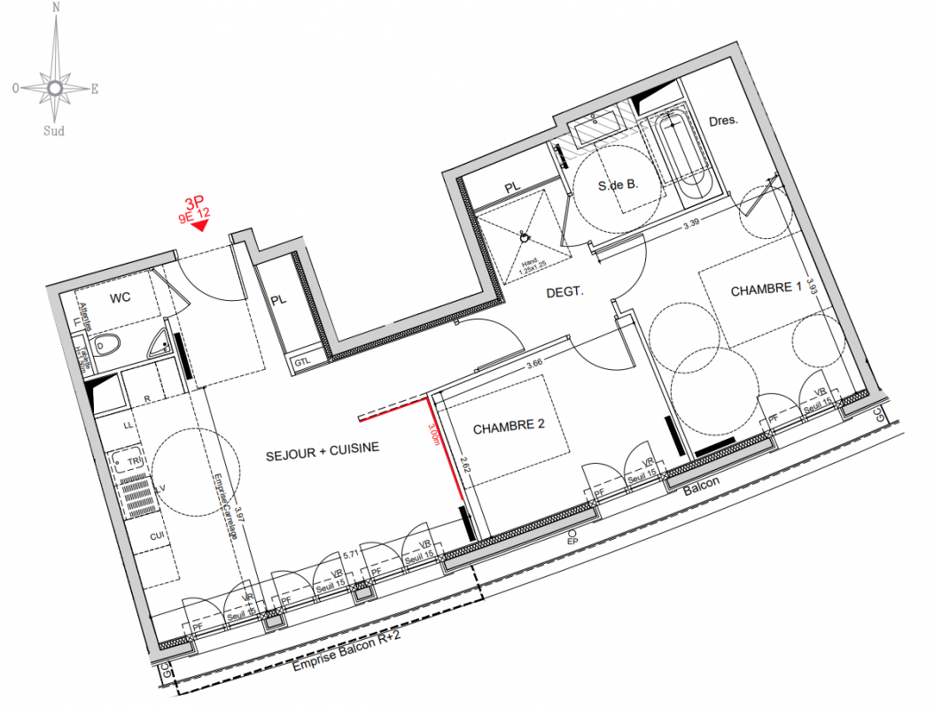 642 000€ Appt. T3 66.09m2 3ème
