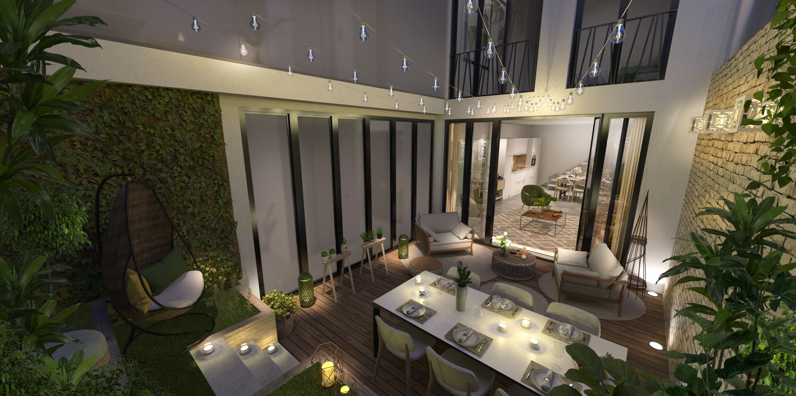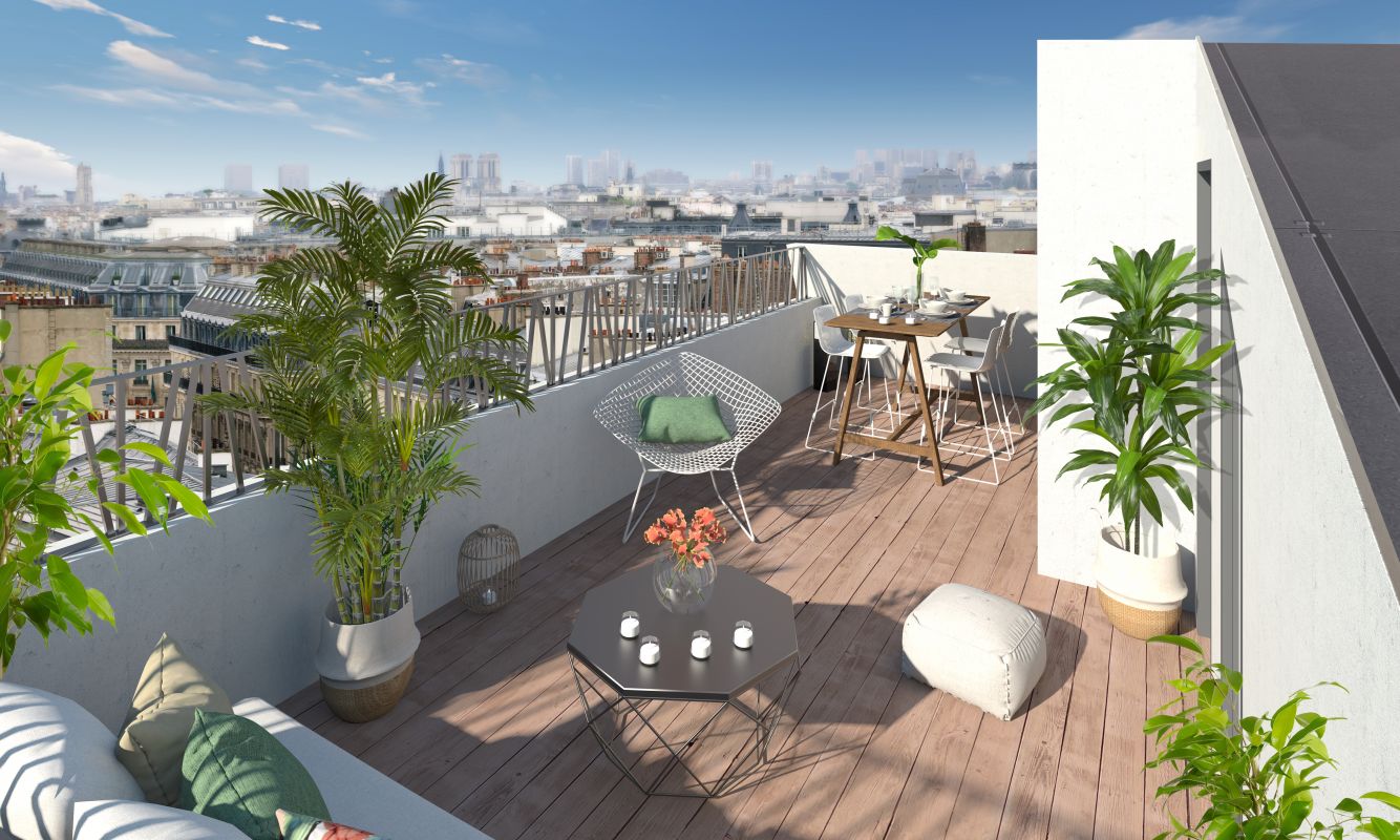 Deux terrasses accessibles ; une pour le triplex derniers niveaux, et une pour le triplex jardin