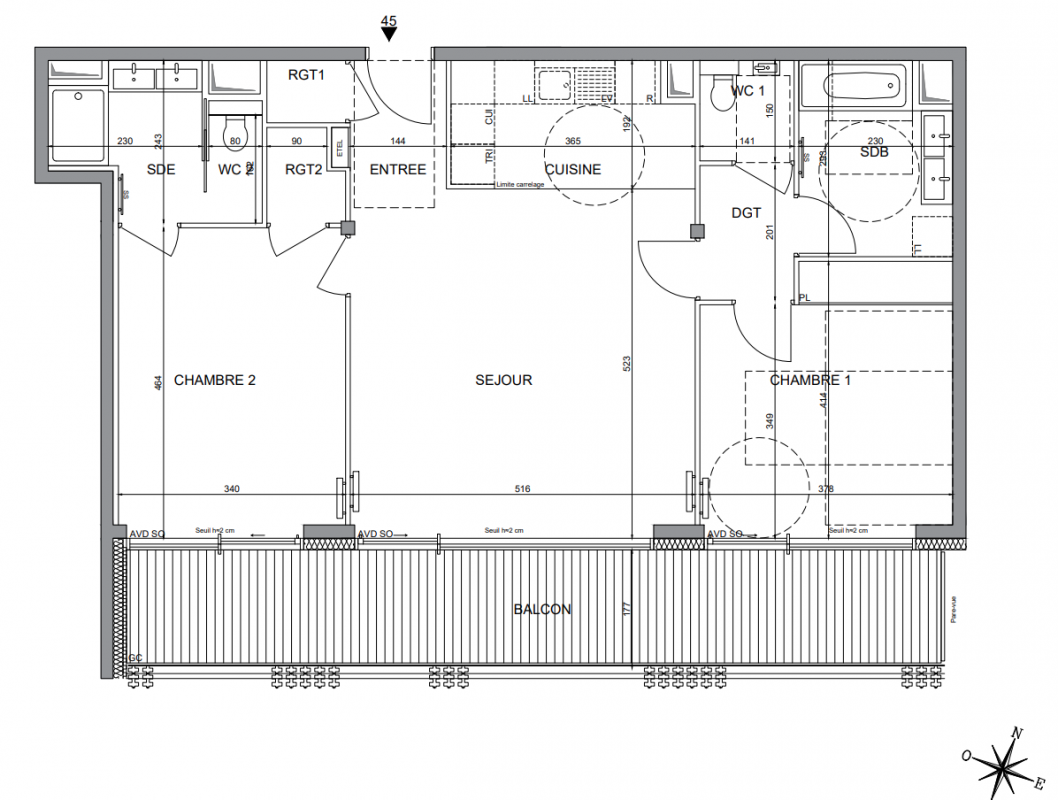 34 appartements avec balcons et terrasses