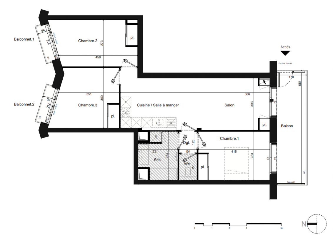 632 000€ Appt. T4 72.2m2 4ème