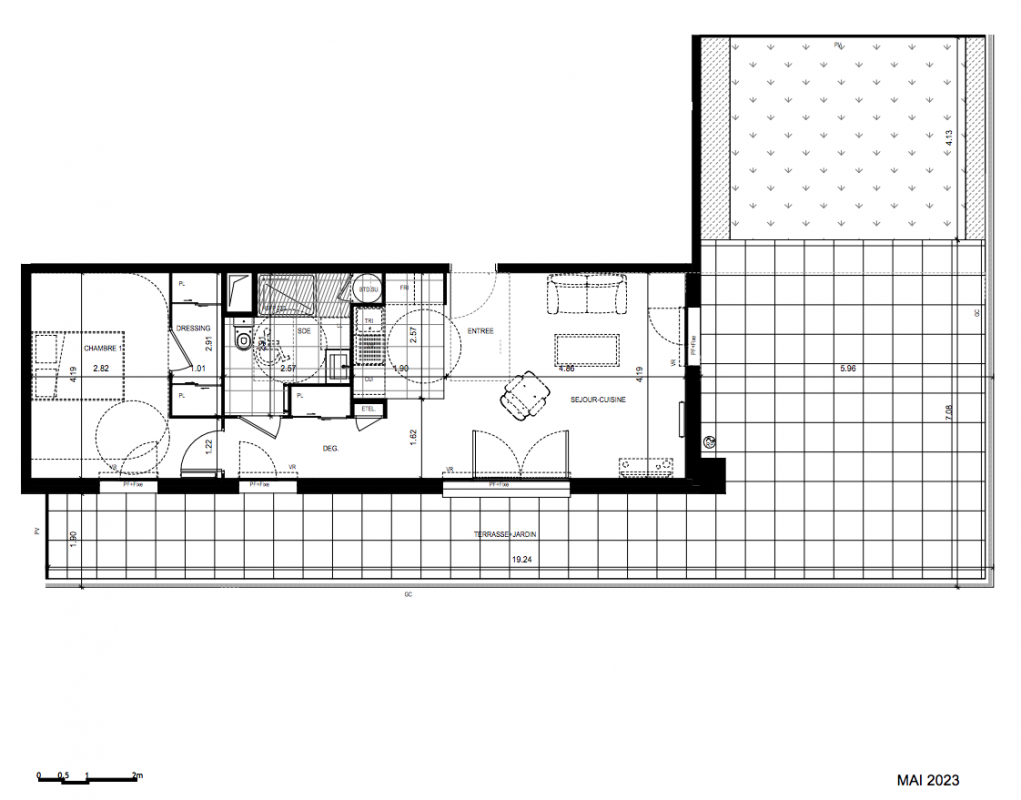 Sur l’avenue du Maréchal Foch, à l’angle des rues Léon leRoyer et Paul Prunet, la résidence Square Foch intègreun ensemble venant moderniser l'adresse : salle de sport, workingcafé, hôtel 3 étoiles, espaces de coliving, commerces au pied du programme et crèche créent une véritable vie de quartier contribue à dessiner le nouveau visage du centre ville.La résidence a un style architectural moderne et épuré. Elle propose des appartements allant du studio au 5 pièces qui profitent d’une ouverture surl’extérieur avec balcon, jardin en rez-de-chaussée, ou terrasse plein ciel.Des villas sur le toit offrent des espaces exceptionnels. RESIDENCEPerformance énergétique : les logements répondront à la RE 2020Diversité des typologies pour favoriser une mixité des usagesExtérieur pour chaque logement : balcons de taille standard, larges terrasses (moyenne à 25m2, certaines > 75m2)1 à 2 place(s) de stationnement par appartementENVIRONNEMENTSquare Foch est idéalement située, notamment pour les familles, avec les écoles et le collège voisinA quelques pas du programmeServices de proximité => salle de sport, café Commerces du quotidien => boulangerie, supermarché, banqueRevêtement linoléum pour les séjours Carrelage pour les salles d’eau et les cuisines Salles de bain équipées d’un meuble vasqueavec sous-plan vasque avec tiroirs, un miroiret une réglette LED Sèche-serviette électrique Fenêtres et portes-fenêtres en PVC, ouvrantes àla française, oscillo-battantes avec parties fixes (double vitrage)Vitrage en verre granité ou translucide dansles salles d’eau Volets roulants PVC à commande manuelle• Porte anti-effraction, serrure 3 points A2P* Accès à l’entrée par vigik et vidéophoneBornes de recharge électriqueA 10 min à pied du "pôle Luxembourg" accueillant marché et commerces de bouche, médiathèque, IUT de MeauxA 10 min à pied de la plage de Meaux proposant des activités et sports nautiquesA 10 min à pied du parc du Pâtis pour les balades, jogging, moment de détente en familleA 17 min à pied de la gare de Meaux / 6min en vélo