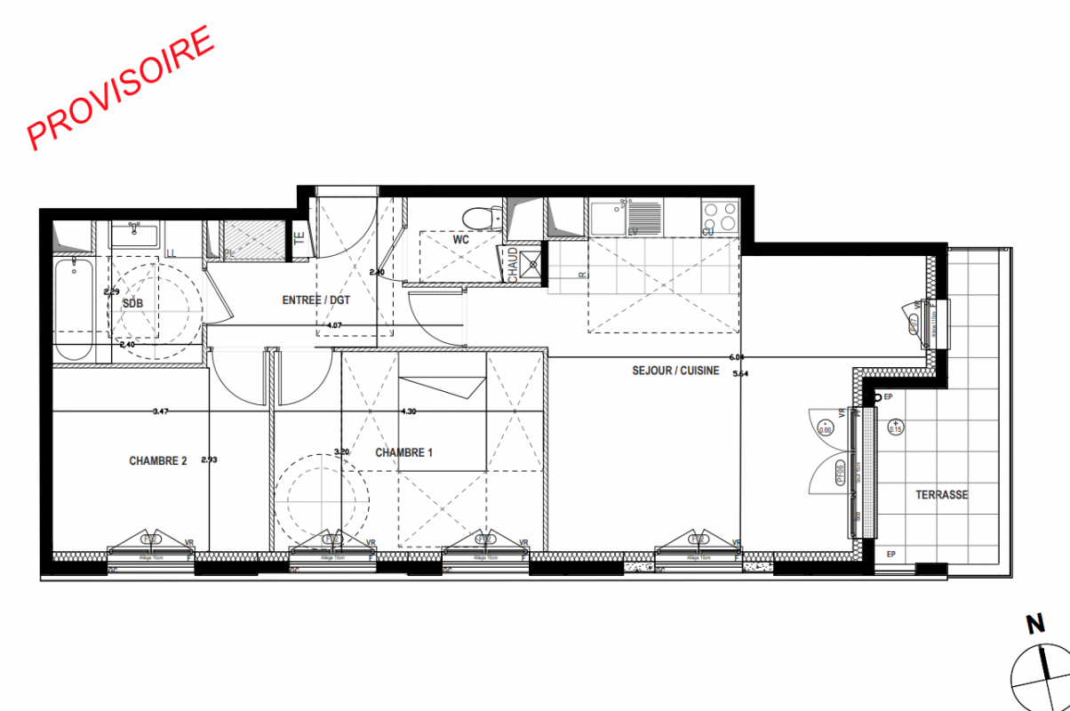 408 000€ Appt. T3 66.27m2 4ème