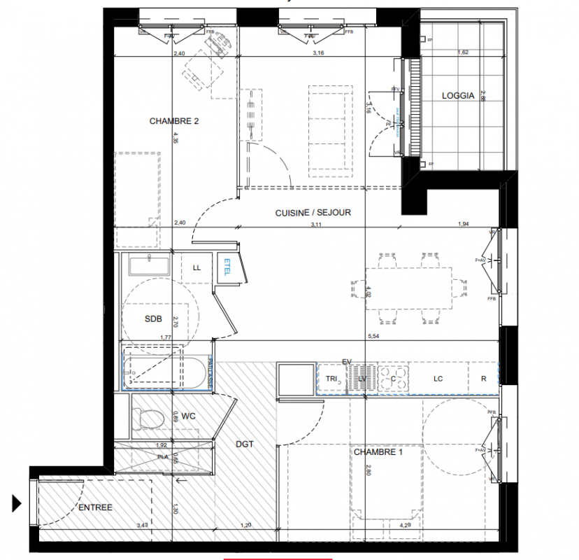 289 934€ Appt. T3 58.5m2 3ème