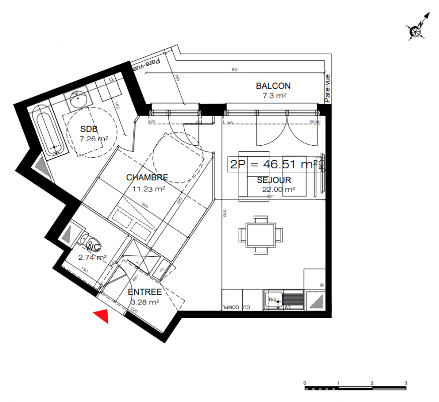 Découvrez nos 63 appartements, du 2 au 4 pièces, tous accompagnés d'une place de parking et d'un local à vélos, pour un confort de vie optimal.