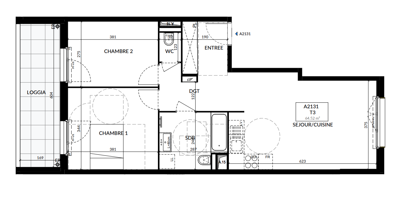 318 000€ Appt. T3 64.08m2 6ème