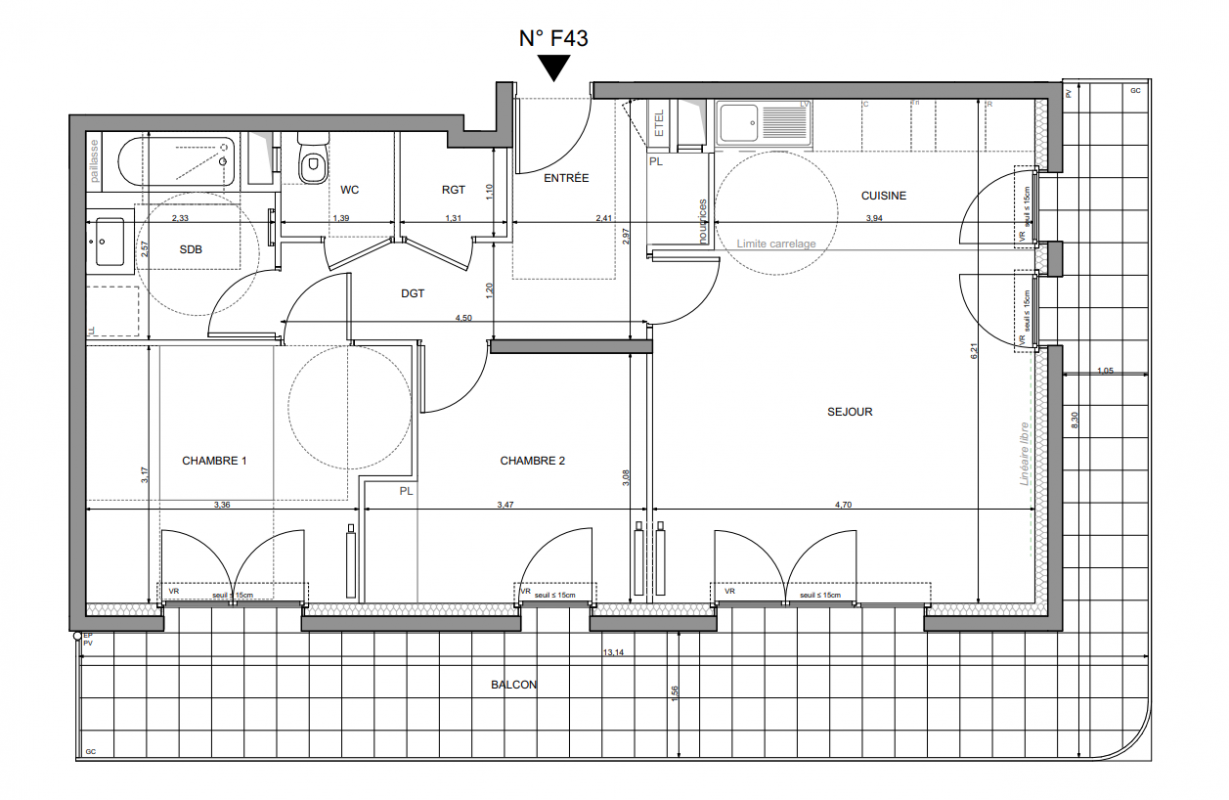 396 967€ Appt. T3 62.33m2 7ème