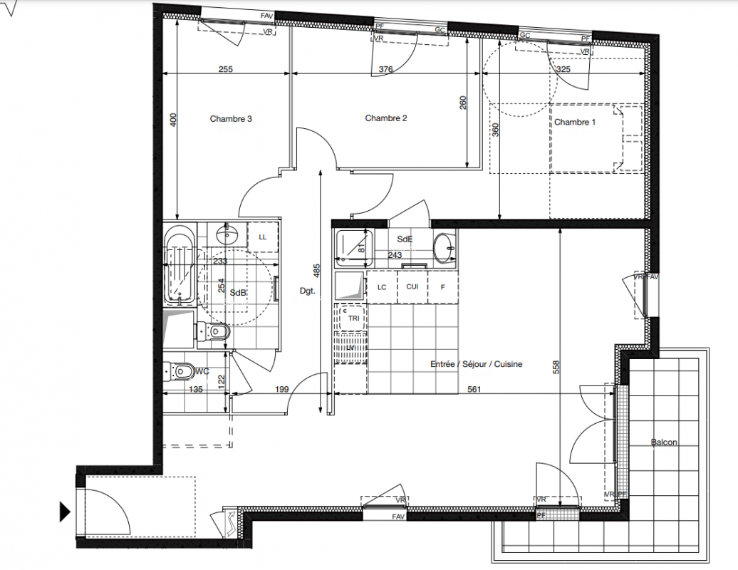 Stationnements en sous-sol.