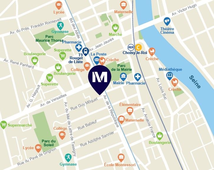 NOUVEAU à Choisy-le-Roi ! Soyez parmi les premiers à choisir votre appartement neuf avec espace extérieur et parking.Notre nouvelle adresse, en plein centre-ville, bénéficie d’une localisation privilégiée, offrant un accès direct à tous les essentiels du quotidien : supermarchés, restaurants, services, ainsi qu’un ensemble scolaire complet de la maternelle au lycée, à seulement quelques minutes à pied. Les bords de Seine ainsi que le parc de la Mairie situés tout proches de la résidence, offrent un environnement naturel propice aux promenades et aux activités en plein air. Côté transports, la gare RER C Choisy-le-Roi, accessible en seulement 7 min* à pied, relie Paris en quelques minutes. À cela s’ajoutent le tramway T9 au pied de la résidence et un large réseau de bus facilitant l’accès aux communes environnantes. Pour les amateurs de mobilité douce, la ville encourage les déplacements à vélo grâce à des pistes cyclables bien aménagées le long des berges et dans le centre-ville favorisant un mode de vie écologique et pratique. Notre résidence propose des appartements du 2 au 4 pièces, pensés pour offrir confort et modernité au quotidien. Chaque logement dispose d’un espace extérieur privatif – balcon, terrasse ou jardin privatif prolongeant ainsi l’espace de vie pour profiter pleinement du calme et de la verdure environnante. Des parkings en sous-sol ainsi qu’un local à vélos sont disponibles. Contactez dès maintenant un de nos conseillers pour découvrir tous nos appartements neufs à Choisy-le-Roi et être parmi les premiers à choisir le logement neuf de vos rêves aux portes de Paris !