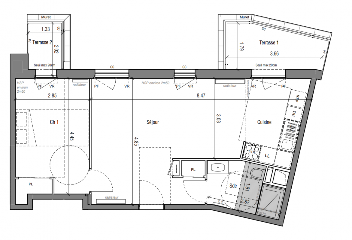 405 000€ Appt. T2 50.08m2 0-RDC