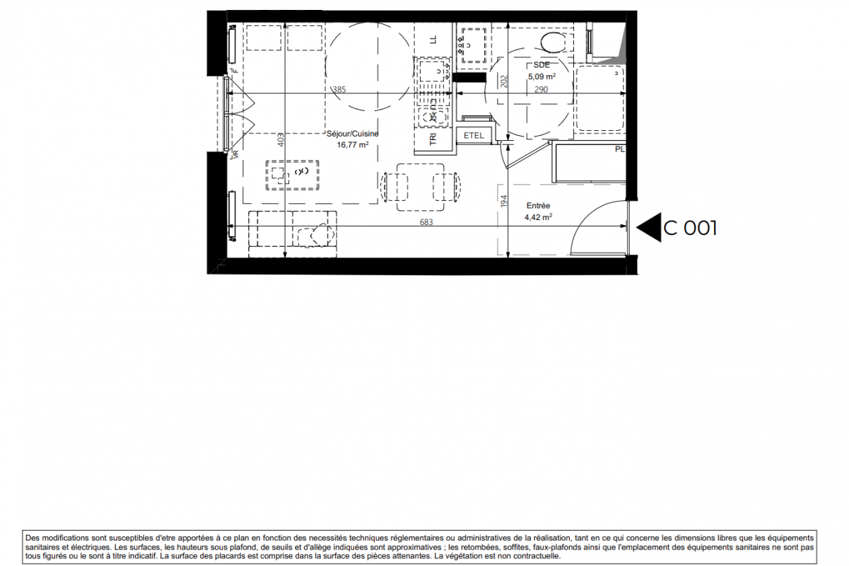 227 000€ Appt. Studio 29.99m2 0-RDC