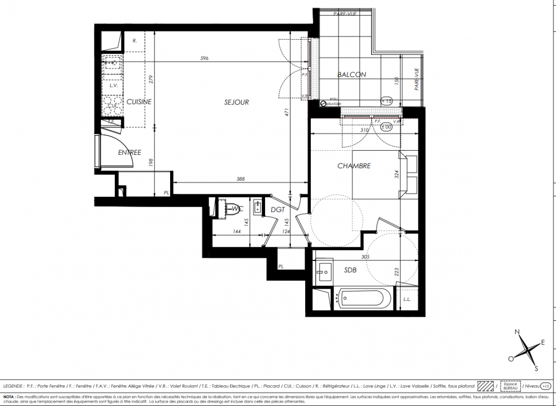 336 000€ Appt. T2 47.62m2 1er