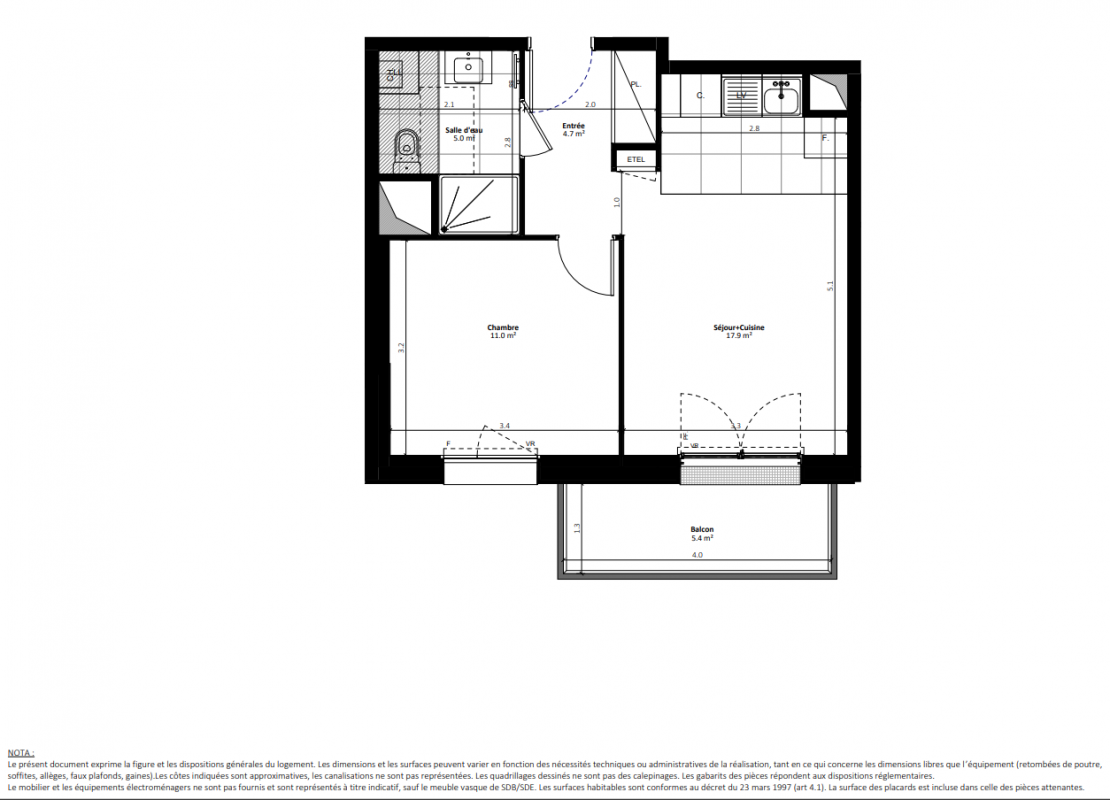 229 900€ Appt. T2 45.3m2 0-RDC