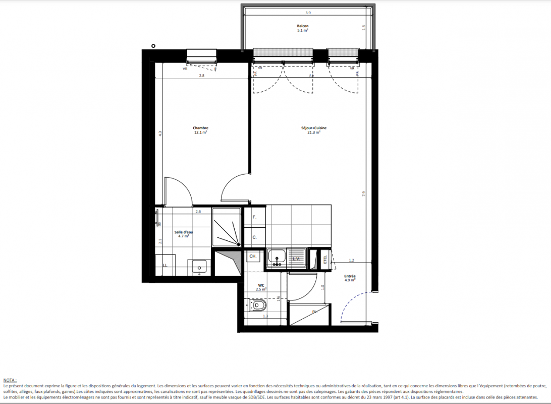 196 700€ Appt. T2 39.2m2 1er