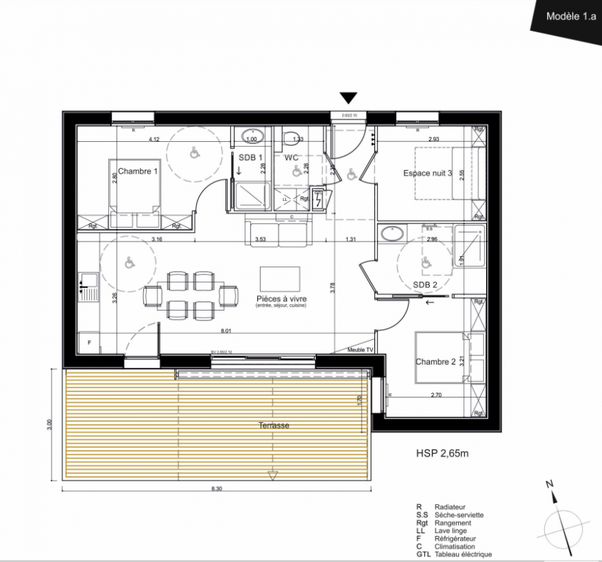 | Voir | Disponible | 383 297€ | M11 | Appt. | T3 | 70.1m2 | 0-RDC | Disponible | 383 297€ | Voir |